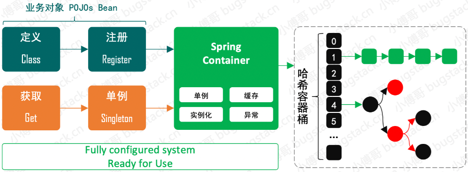 在 Spring Bean 容器的场景下,我们需要一种可以用于存放和名称索引式的数据结构,所以选择HashMap(ConcurrentHashMap)。