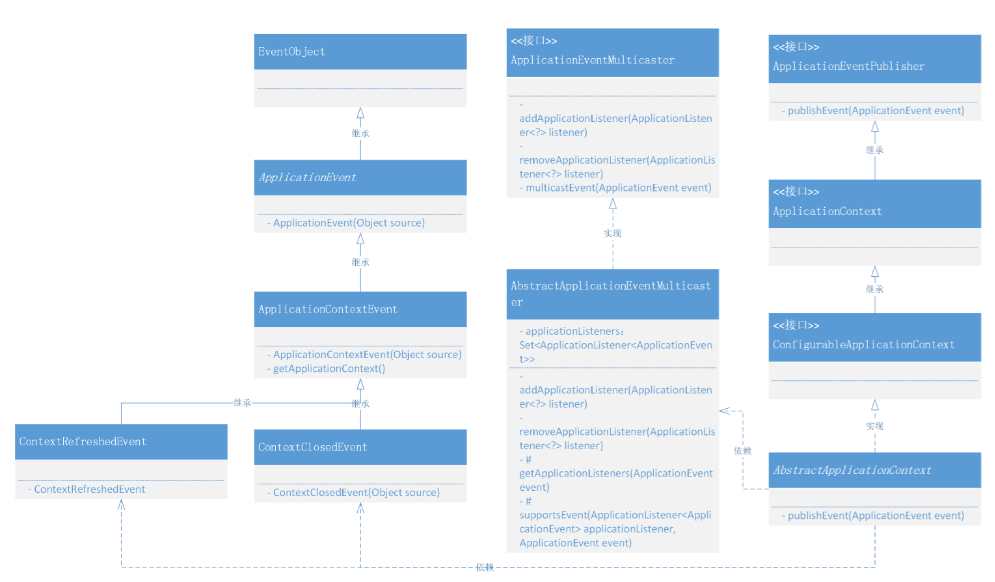 - ApplicationEventPublisher:事件发布接口,发布事件的入口。