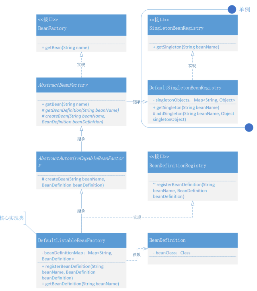 Step 2:实现Bean 的定义、注册、获取: