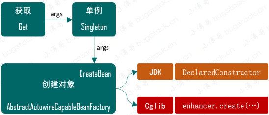 负责真正地“new 一个 Bean”,然后加入单例池。