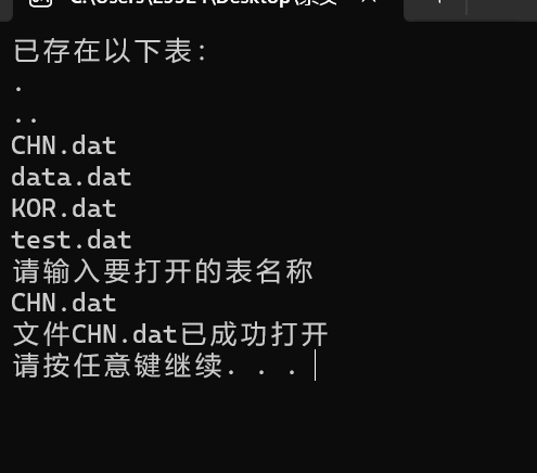 输入CHN.dat,提示文件已成功打开,按任意键返回主菜单。此时即可使用其他功能。