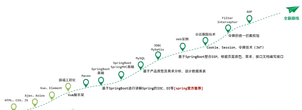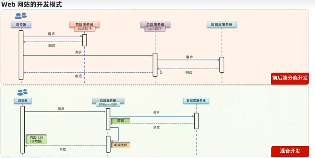 主要学习前后端分离开发模式。(市场主流为前后端分离开发)