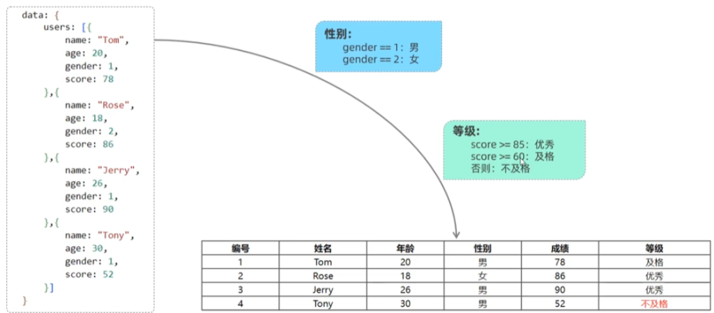 <td>{{index+1}}</td><td>{{user.name}}</td><td>{{user.age}}</td><td v-if="user.gender==1">男</td><td v-else-if="user.gender==2">女</td><td>{{user.score}}</td>