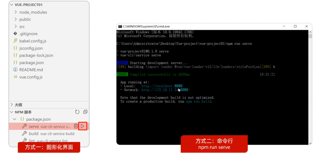 进行Vue工程开发,很少去操作 index.html 与 main.js ,主要操作组件,即.vue文件