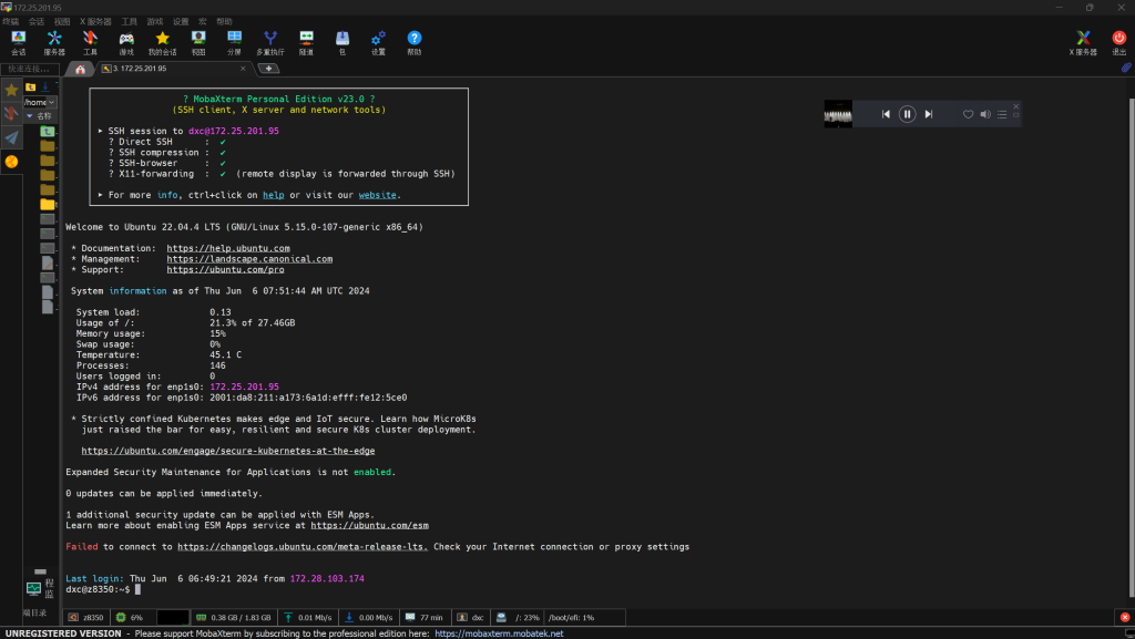 此处使用MobaXterm通过SSH连接到服务器(这个工具SSH连接后就可以通过SFTP直接上传下载文件,爽歪歪)。
