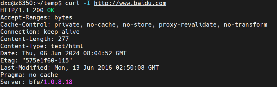 提示登陆成功。使用 curl -I http://www.baidu.com 测试: