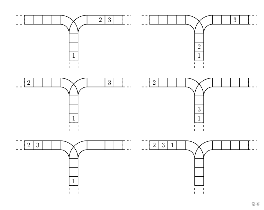 使用这两种操作,由一个操作数序列就可以得到一系列的输出序列,下图所示为由 1 2 3 生成序列 2 3 1 的过程。